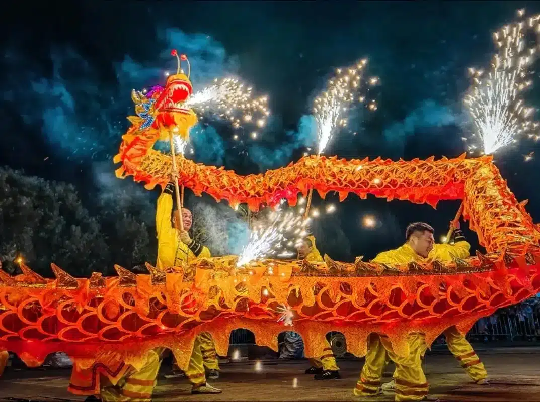 От первого до пятнадцатого дня Китайского нового года во многих регионах Китая соблюдается традиция исполнения танцев драконов. В китайской культуре драконы символизируют удачу, престиж, храбрость и власть. Танец исполняется с надеждой на мир и процветание в наступающем году.