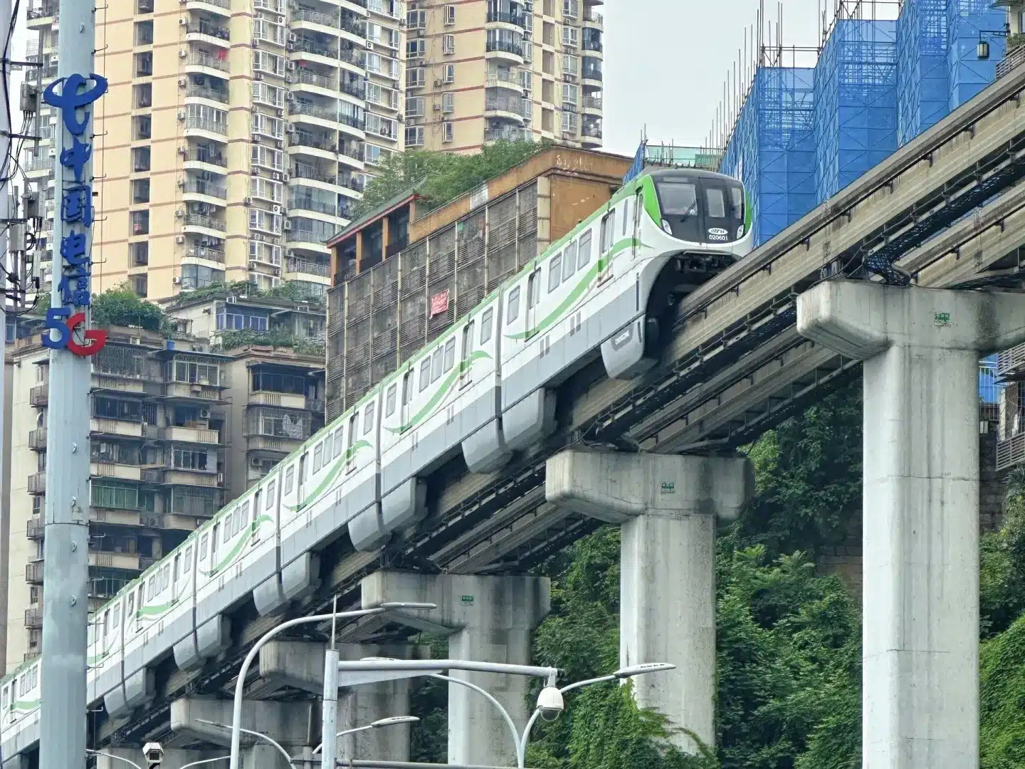Смотровая площадка Лизиба предлагает уникальную точку обзора. Отсюда открывается удивительное зрелище, когда легкорельсовый транспорт проходит прямо через здания в Чунцине.